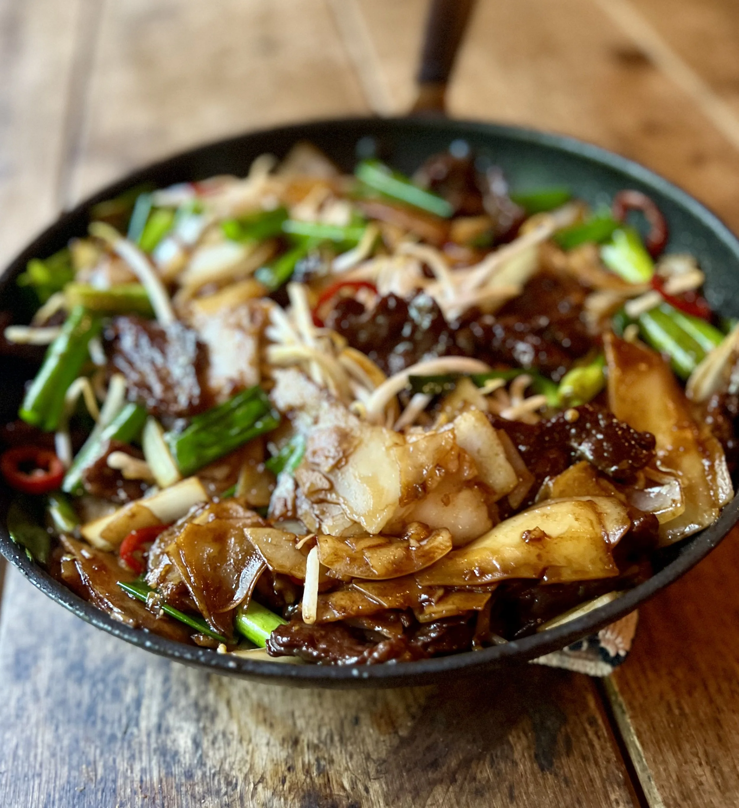 Beef chow fun! Is there better take-out? (Or take-away?) It's always been one of our favorites. But we live in rural New England . . . so we have to make our own.